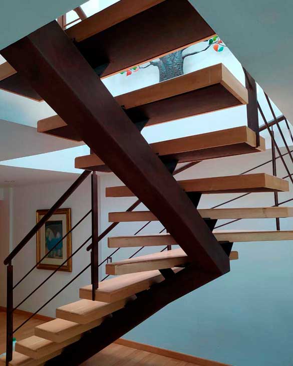 - Variedad de Acabados: Personalice su escalera con diferentes tipos de madera, tonalidades y diseños para adaptarla a su estilo.
